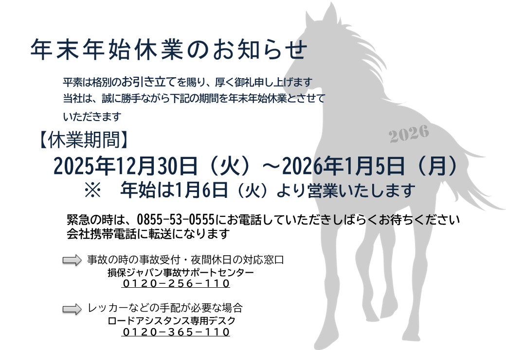 年末年始休業のお知らせ
