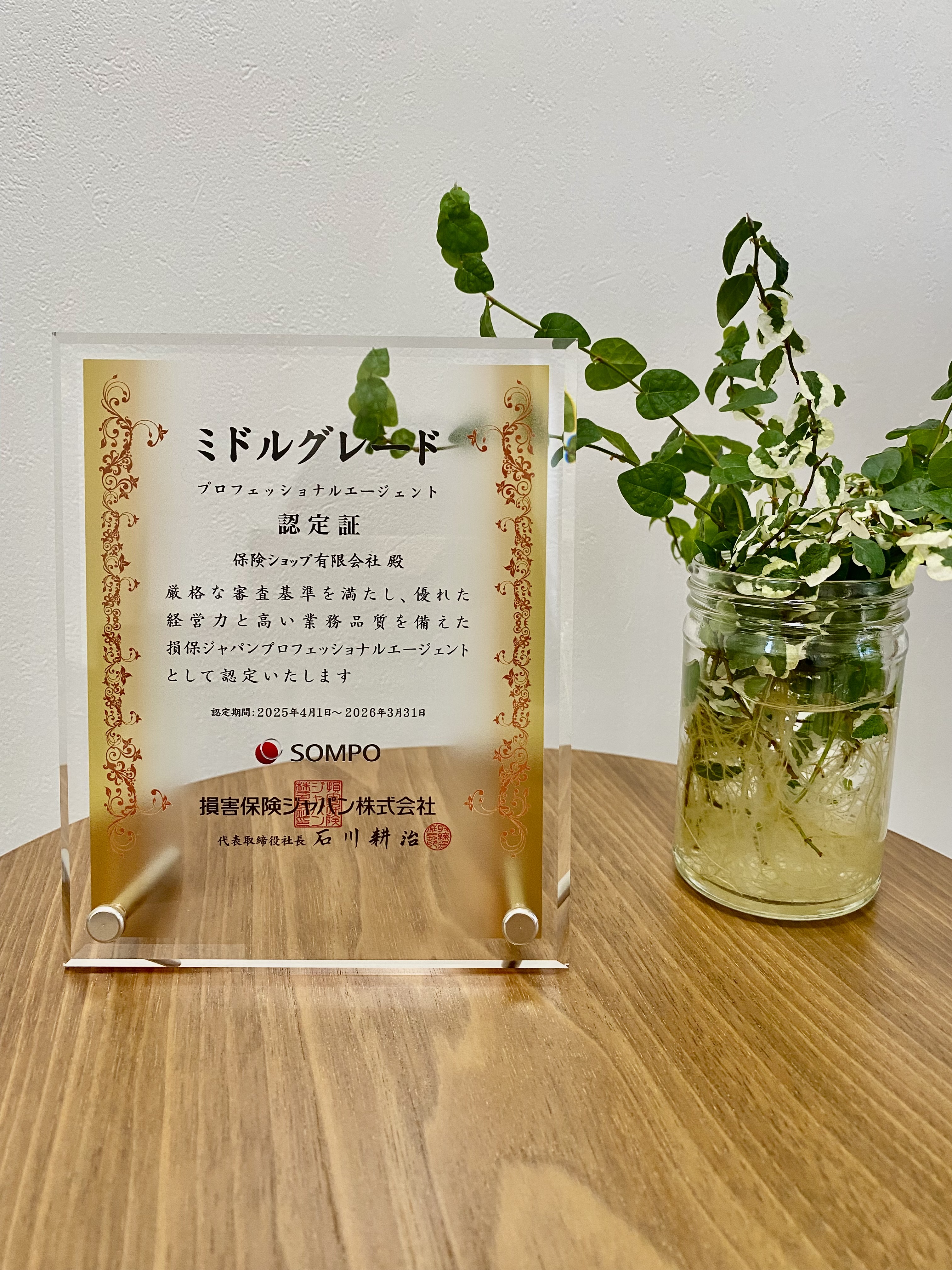 2025.05.07 お知らせ 当社は損害保険ジャパン・プロフェッショナルエージェント認定代理店です。 今年度も、損害保険ジャパン・プロフェッショナルエージェントの認定証が届きました! 毎年、認定していただけるように日々精進いたします! 今後ともどうぞよろしくお願い申し上げます。
